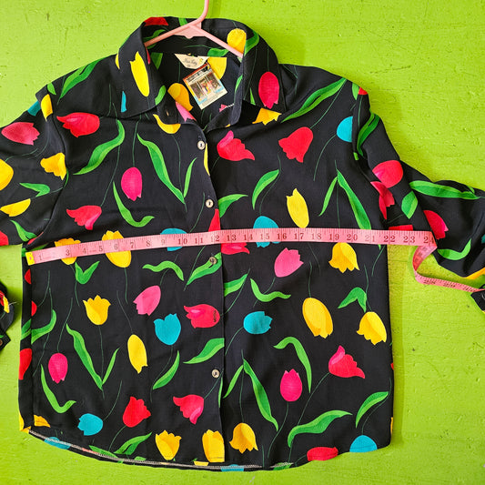 VINTAGE MULTICOLOR TULIP BUTTON UP!
