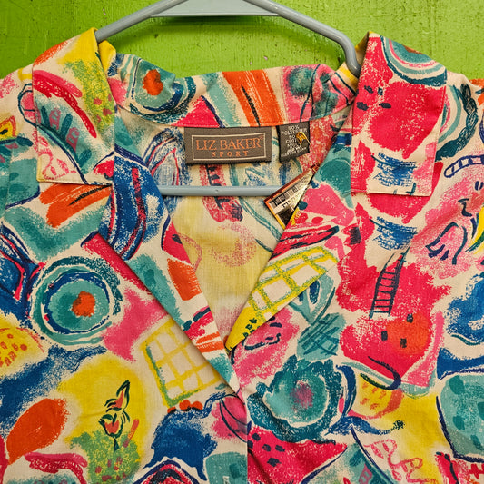 FUNKY VINTAGE LIZ BAKER BUTTON UP !