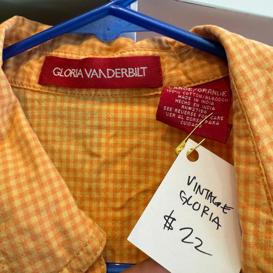 VINTAGE GLORIA VANDERBILT MARIGOLD PLAID BLOUSE !