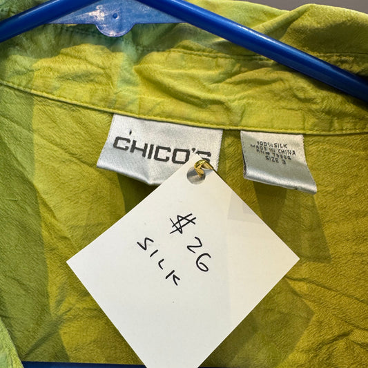 SILK CHICOS CHARTREUSE BUTTON UP TANK