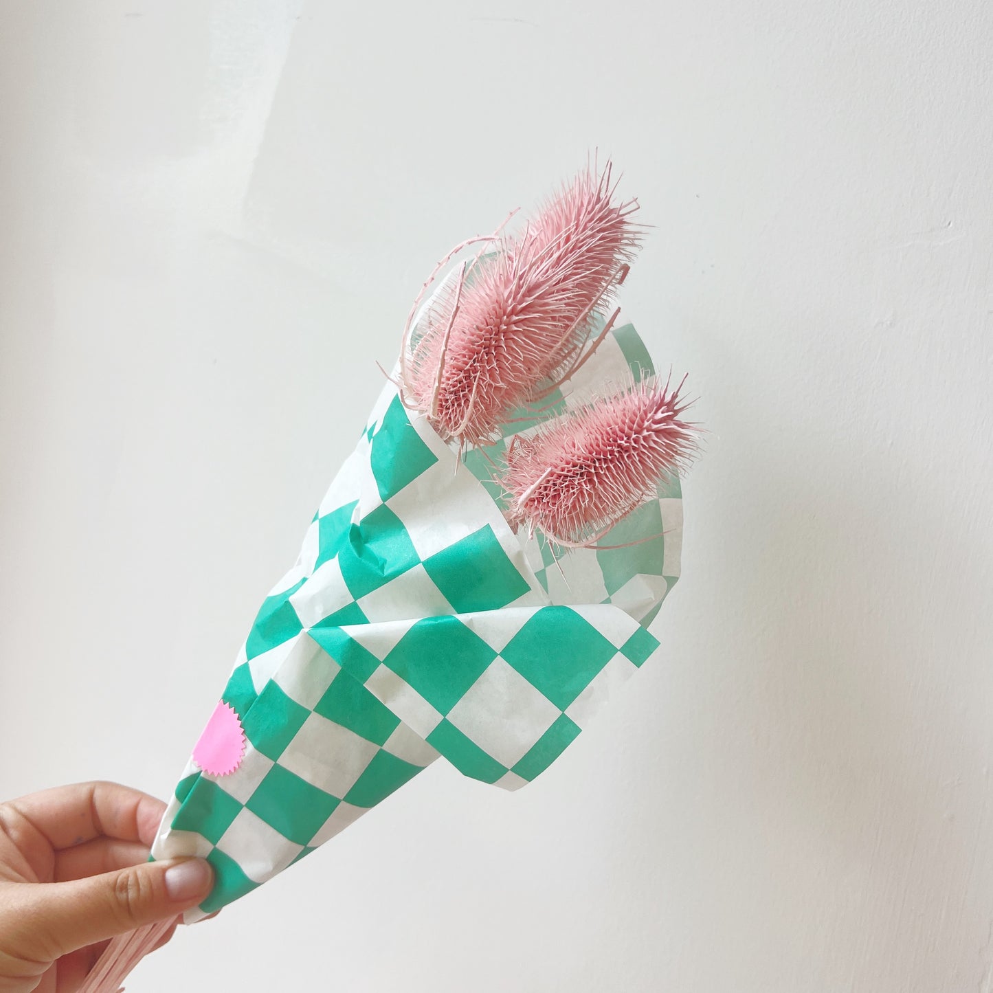 Dried and dyed pink Thistles, three stems