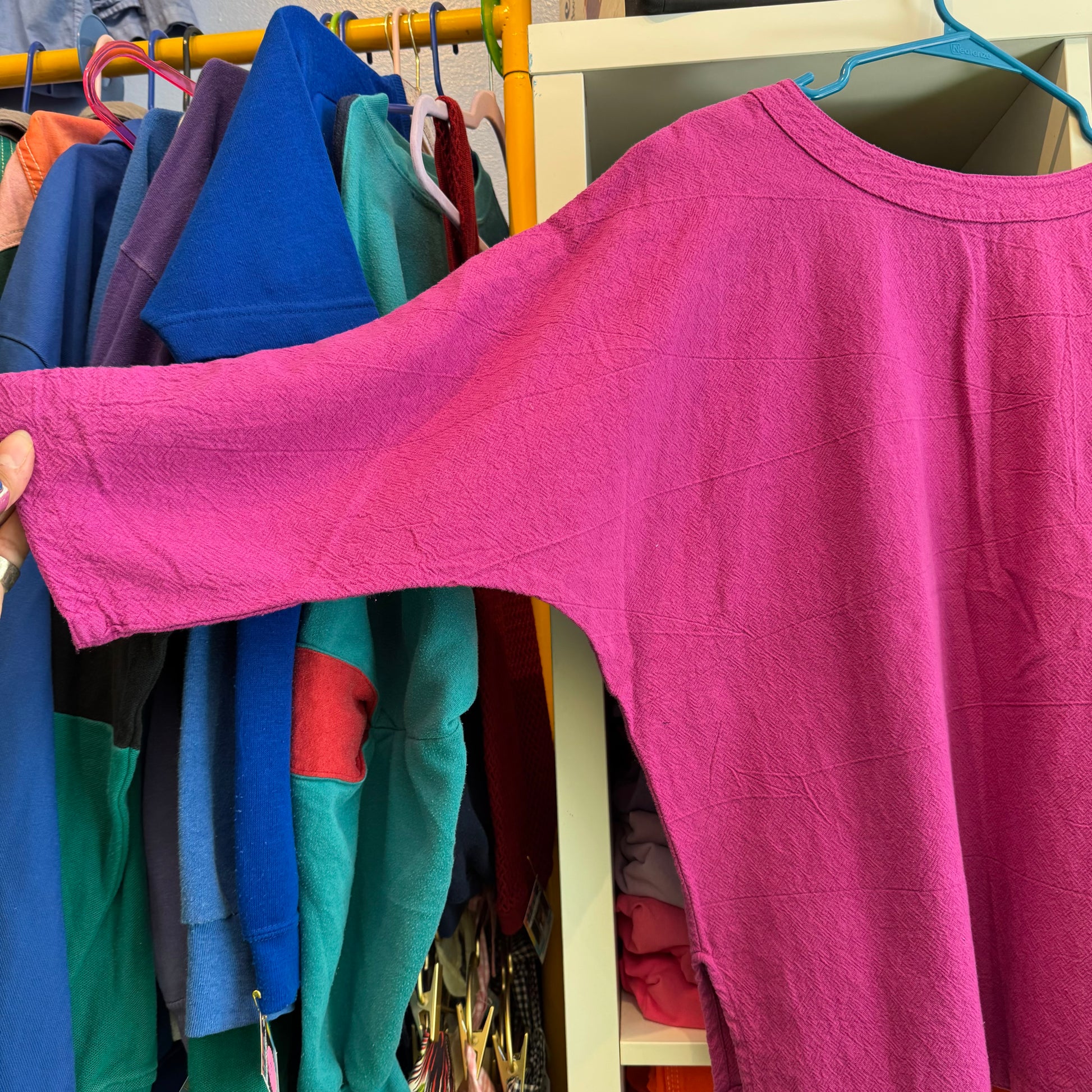 VINTAGE 70s COTTON MAGENTA FLOWY BLOUSE