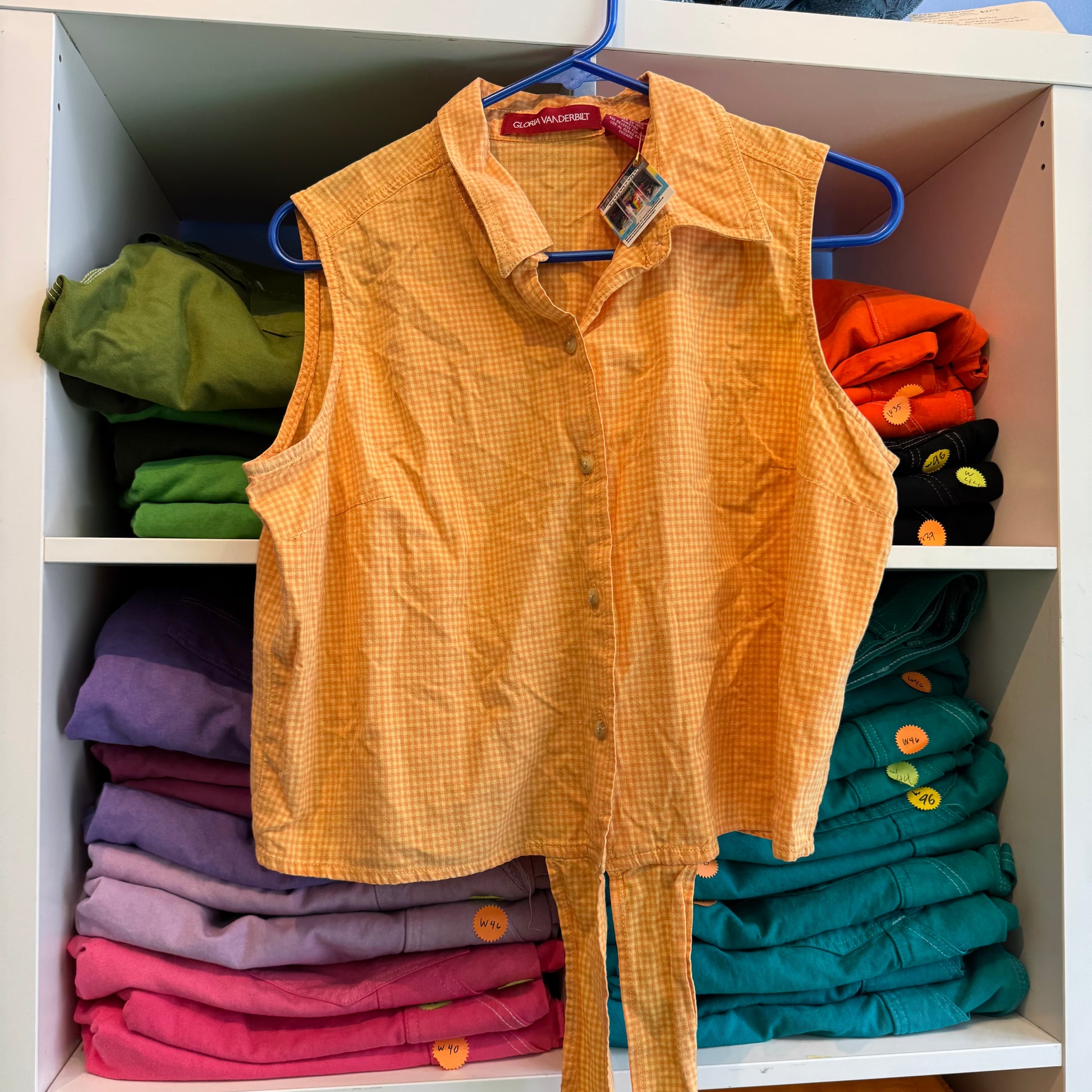 VINTAGE GLORIA VANDERBILT MARIGOLD PLAID BLOUSE !
