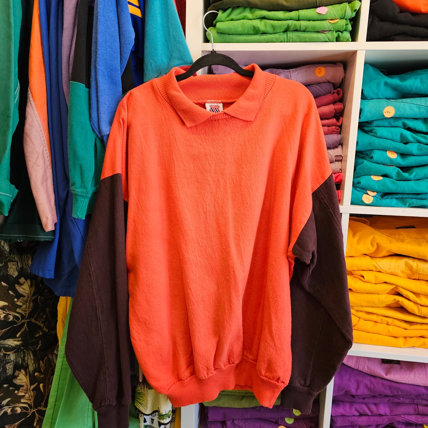 VINTAGE KSWISS ORANGE PULL OVER SWEATER !