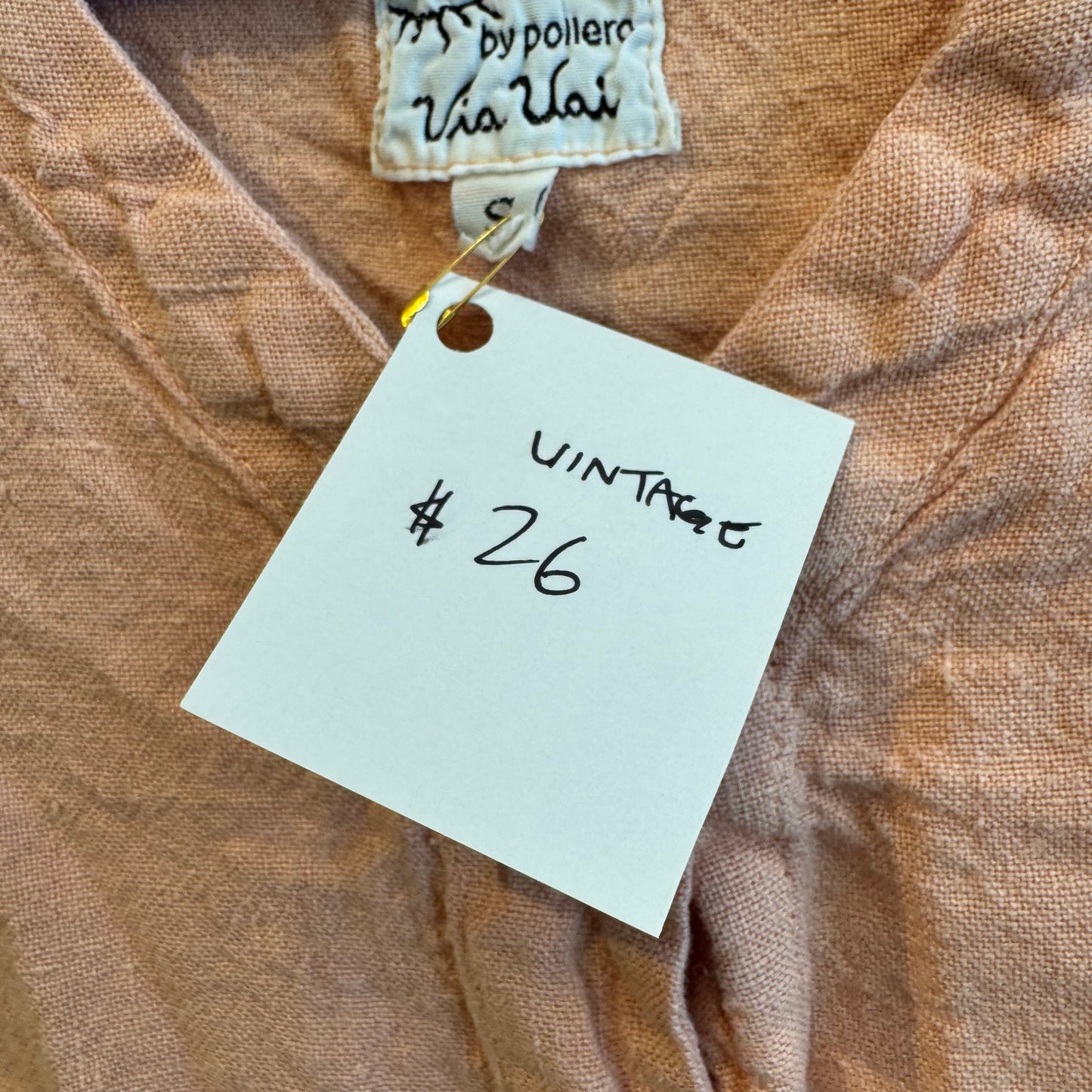 VINTAGE PEACH VIS VAI BUTTON UP TANK !